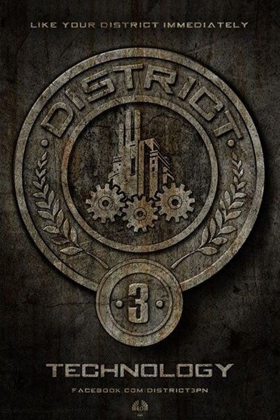District 3: "Panem is one of the most advanced nations in mankind's history, thanks to the efforts of District 3. Its computers keep us all connected and its electronic gadgets keep us all entertained."