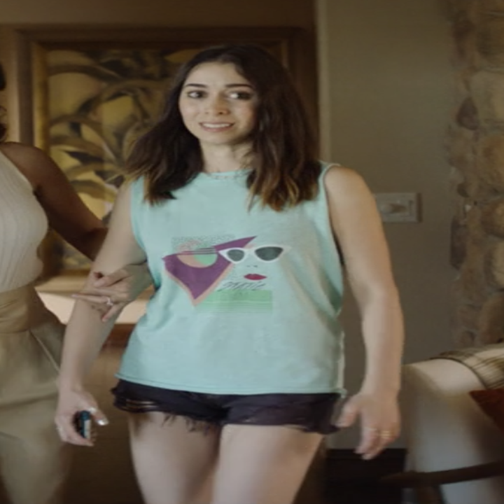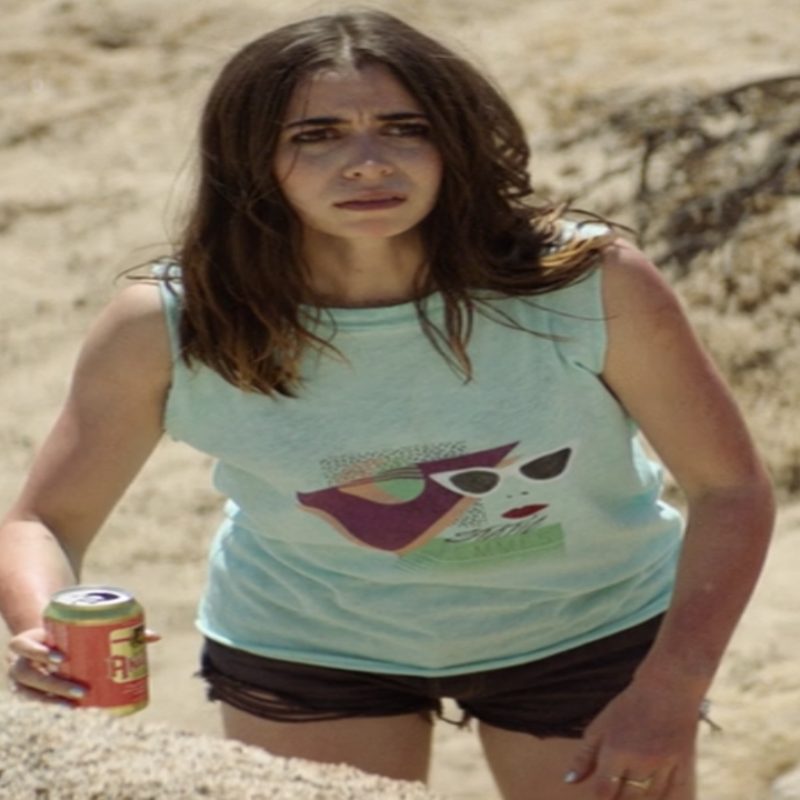 She said it was kind of like a puzzle figuring out which colors looked best on Andy Samberg and Cristin Milioti and then saw what matched from there. She also wanted to make sure their clothes would also make sense for the Palm Springs setting and color scheme.
