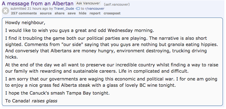 And to think, after all this time I imagined the great Alberta/BC War would be over who was responsible for Nickelback.