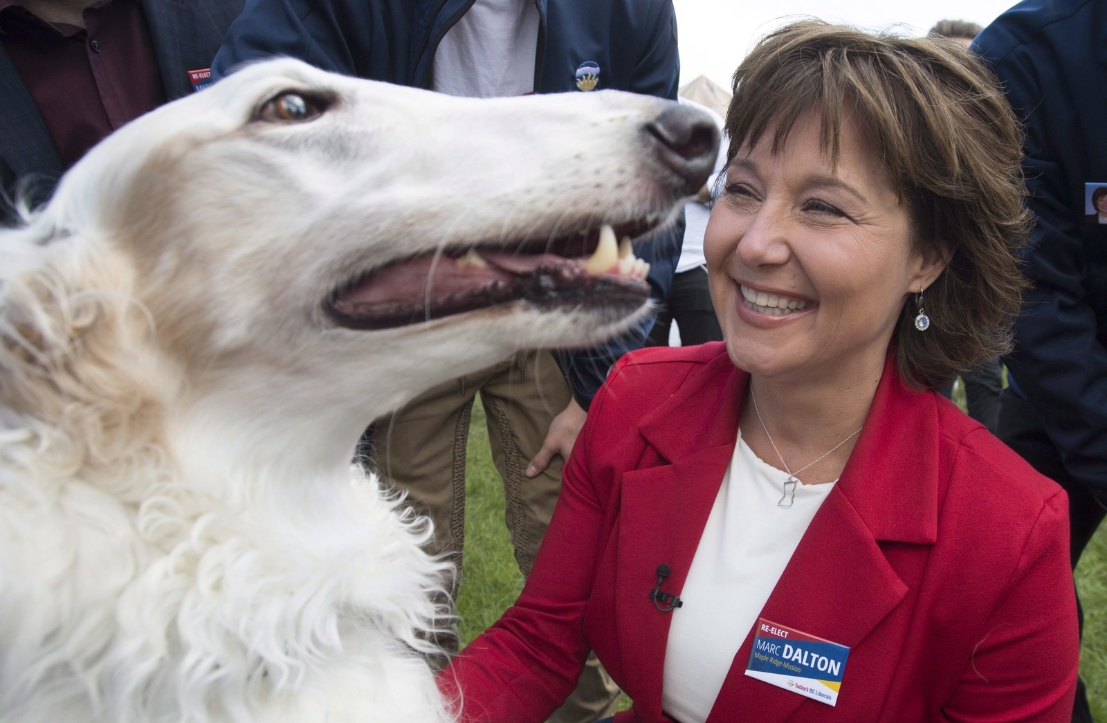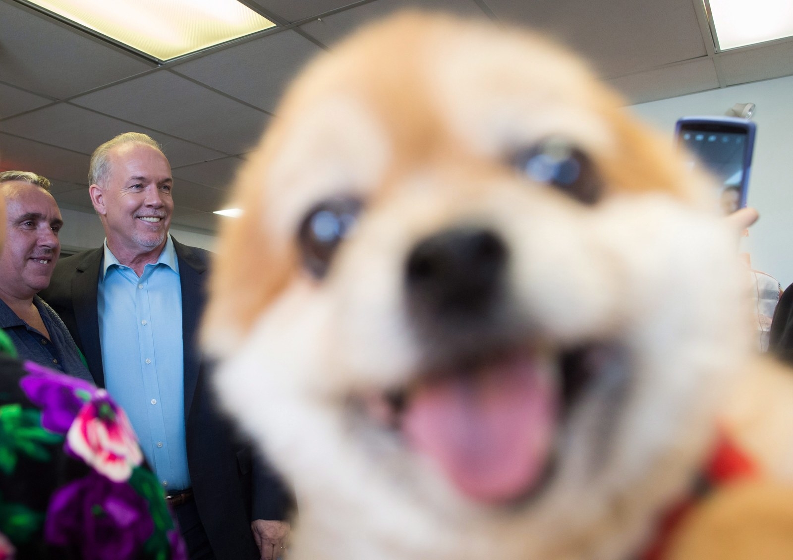 This doggo that photobombed a Canadian Press photo of NDP leader John Horgan at a campaign stop.