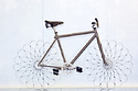 This bike has no rubber tires. Simply a careful collection of flexible steel springs. And the faster you ride, the smoother it becomes.