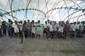Haitian refugees at the Guantanamo Bay Naval Base, Dec. 29, 1991. Bebeto Matthews / ASSOCIATED PRESS