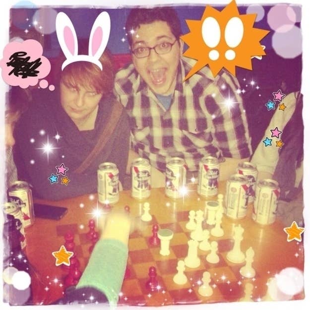 “That’s me and BuzzFeed’s own Tanner Ringerud the night we got kicked out of a bar for placing chess pieces on random strangers’ shoulders and walking away. We called it “chessing” and the bouncers weren’t amused.