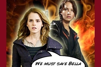 When President Limbaugh builds an army of hyper-masculine protagonists to defeat the threat of strong heroines, Hermione & Katniss team up to fight back. ...And Bella's there, too. Sort of.
