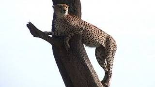 Natural wild African setting, Beautiful Cheetah climbs & perches on a tree scoping her surroundings