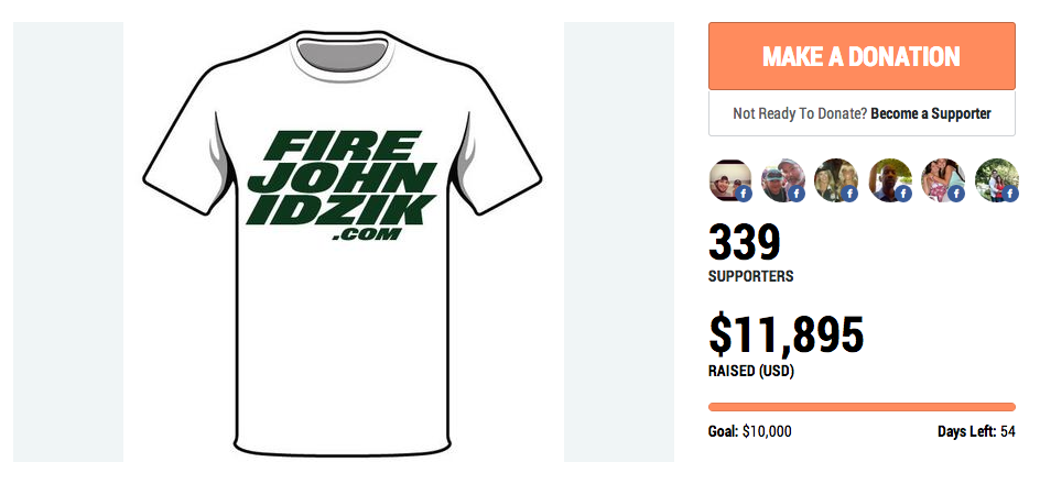 The "Fire John Idzik" campaign is being led by two long-suffering fans from New Jersey who blame the team's incompetence on GM John Idzik and are calling for team President Woody Johnson to fire him.