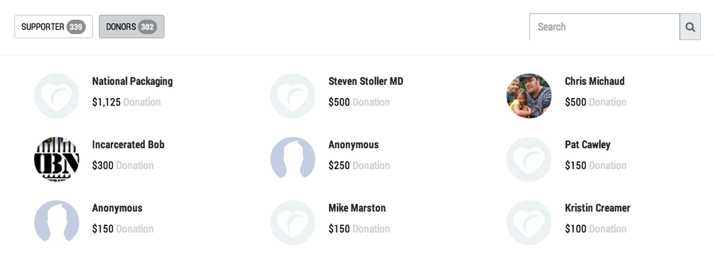 A handful of donors have really coughed up some cash for the cause, including what appears to be National Packaging, a packaging materials company based out of nearby Kearny, New Jersey.