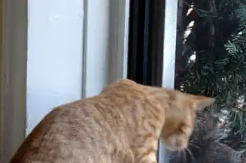 This is Mikey the cat, and the b***** squirrel loves glass windows!