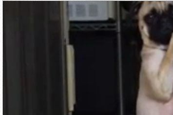 To be fair, most pugs look pretty remorseful, but this one really adds to the effect by trying to sneak out of a time out.