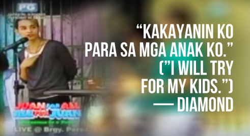 Eat...Bulaga!, a popular noon time show in the Philippines, featured an out gay man named Diamond with a wife and children, asking for advice.