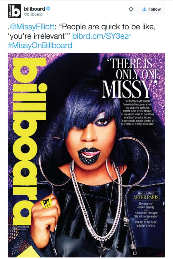 And since she's back back, she's doing interviews like this one with Billboard in which she says "People are quick to be like, you're irrelevant." Billboard tweeted out this quote along with the cover she's on.
