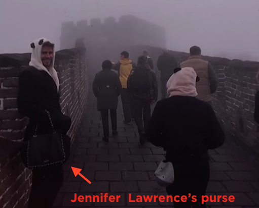 This is a picture of Liam Hemsworth in a panda costume carrying a purse. It's also known as "The World's New Favorite Picture." BUT WHY IS THIS HAPPENING?