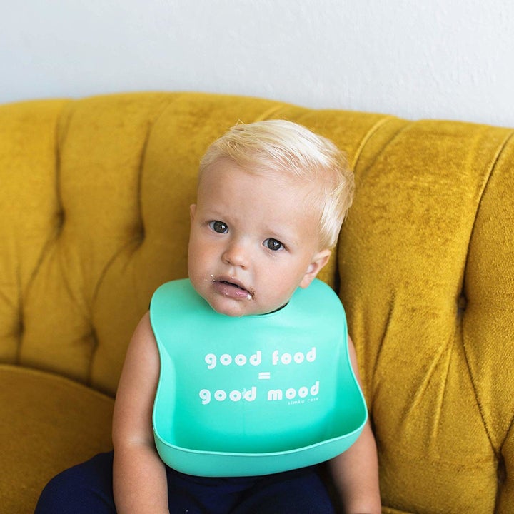 35. A cup bib to catch all the food and drinks your little one can't seem to keep in their mouths (which is, as parents know, most of it). These also wipe clean, making them a quick-drying and smell/stain-free option.