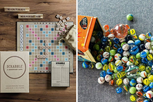 18. A classic tin of marbles that'll have *endless* gaming opportunities. To play one marble game, draw a circle around the scattered marbles and keep one to yourself. Then flick that marble to (hopefully!) hit some outside of the circle, then claim them as your own! Honestly, just talking about this makes me want to start a marble collection again.