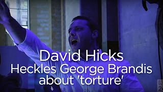 Former Guantanamo Bay detainee David Hicks has heckled Australia's Attorney General George Brandis after the release of a damning CIA report into the U.S. torture program.