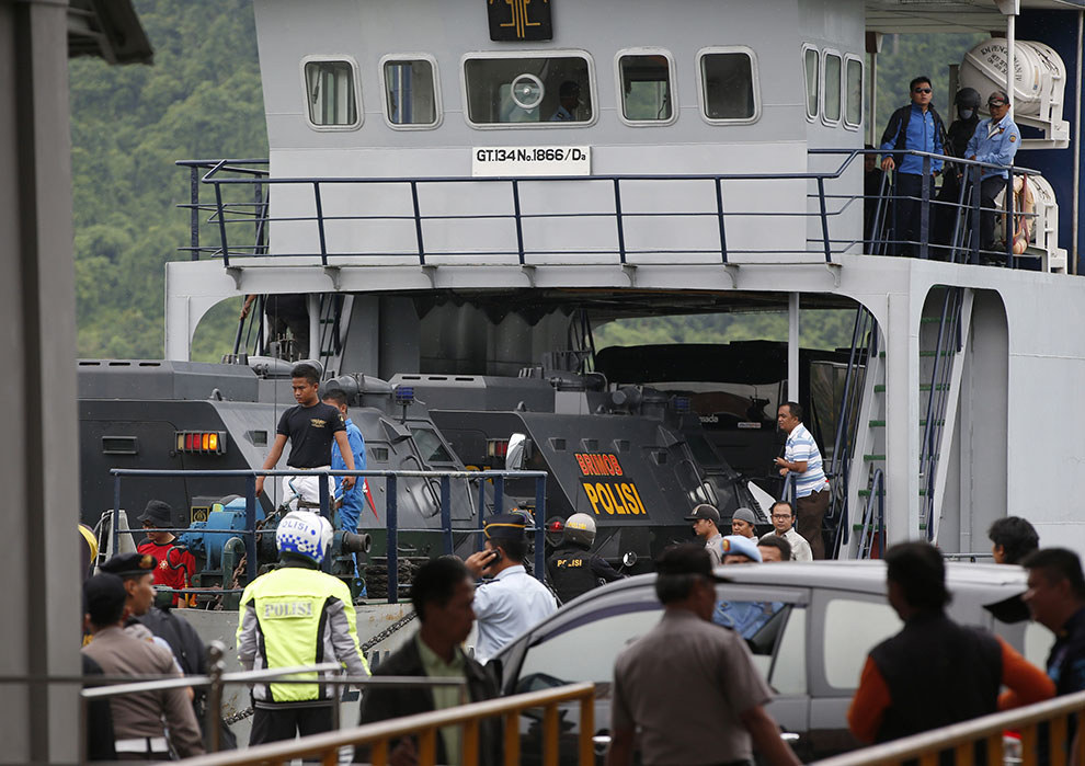 UPDATE 1400AEST: A ferry is transporting armoured police vehicles carrying Sukumaran and Chan to the prison island of Nusa Kambangan.
