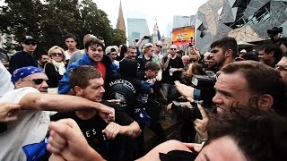 The Melbourne rally got out of control when left-wing counter-protestors clashed with far-right groups on the edge of Federation Square.