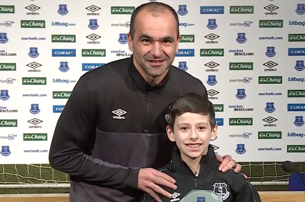 VIDEO: Here's the moment Roberto welcomed up 9 y/o George Shaw to present him with his Goal of the Month award. #EFC https://t.co/yfhVIkEJBy