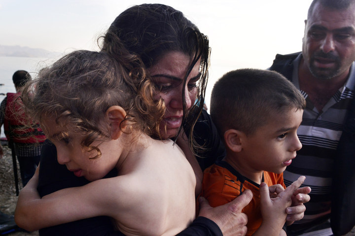 A Syrian family arriving on a beach on the Greek island of Kos in August last year, having arrived from Turkey in a dinghy. Milos Bicanski / Getty Images / File