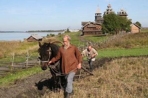 Kizhi is an island in Russia’s Lake Onega. It’s had settlements since the 15th century, among them two churches and a bell tower known as the Kizhi Pogost, built in the 1700’s. The population declined in the 1950’s and historical buildings from around the region were transferred to the island for preservation, and the whole island is now an open-air museum.