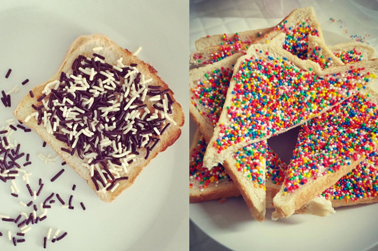 If you toast the bread beforehand, the heat will start to melt the sprinkles, making a gorgeous chocolate mush to bite into. Yes. Good.