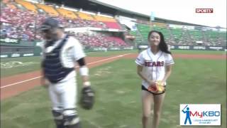 South Korean actress and taekwondo athlete Tae Mi threw the flip pitch before a Doosan Bears baseball game. You have to see it to believe it.