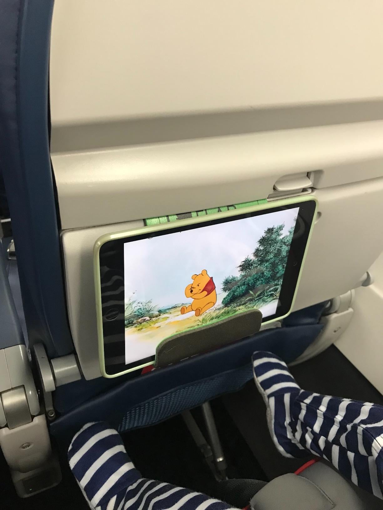 2. A phone and tablet holder that'll allow you to watch movies and TV hands free while you're flying. And for all the people who hate buying a product that made only for very specific scenarios â *insert trumpet fanfare* â you can use this in your everyday life to hold your devices while you're on a call, reading, or when you just want to watch a YouTube video while you eat dinner.