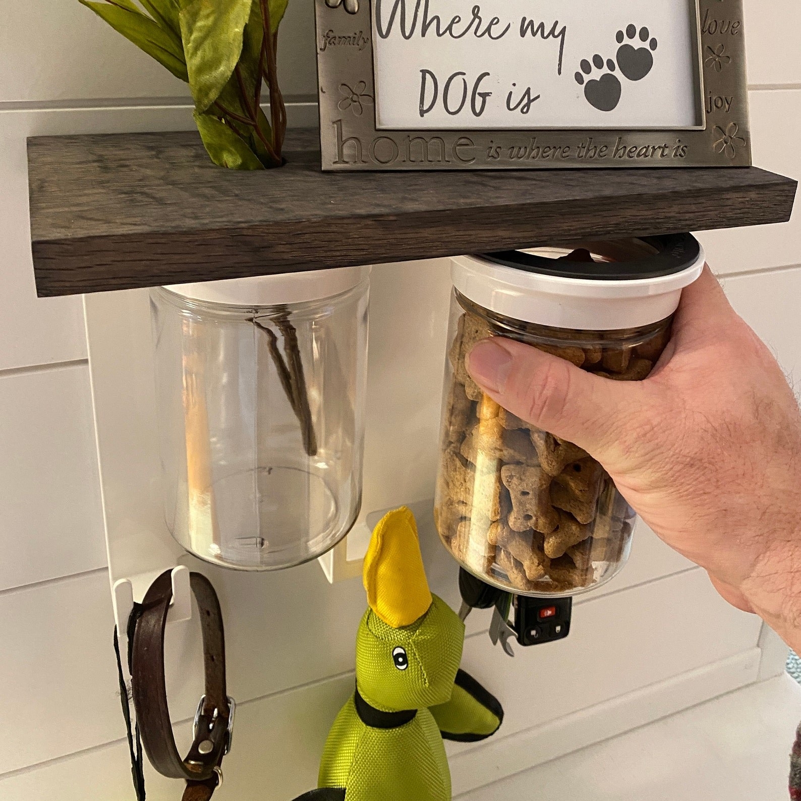 33. A entryway organizer so Mochi's treats, leash, and harness are all in one spot. As soon as she hears that magic four-letter word (the one that rhymes with talk), she'll go bananas, so you better have all her outdoor gear ready to go. And there's also room for your umbrella, mail, car keys, and more!