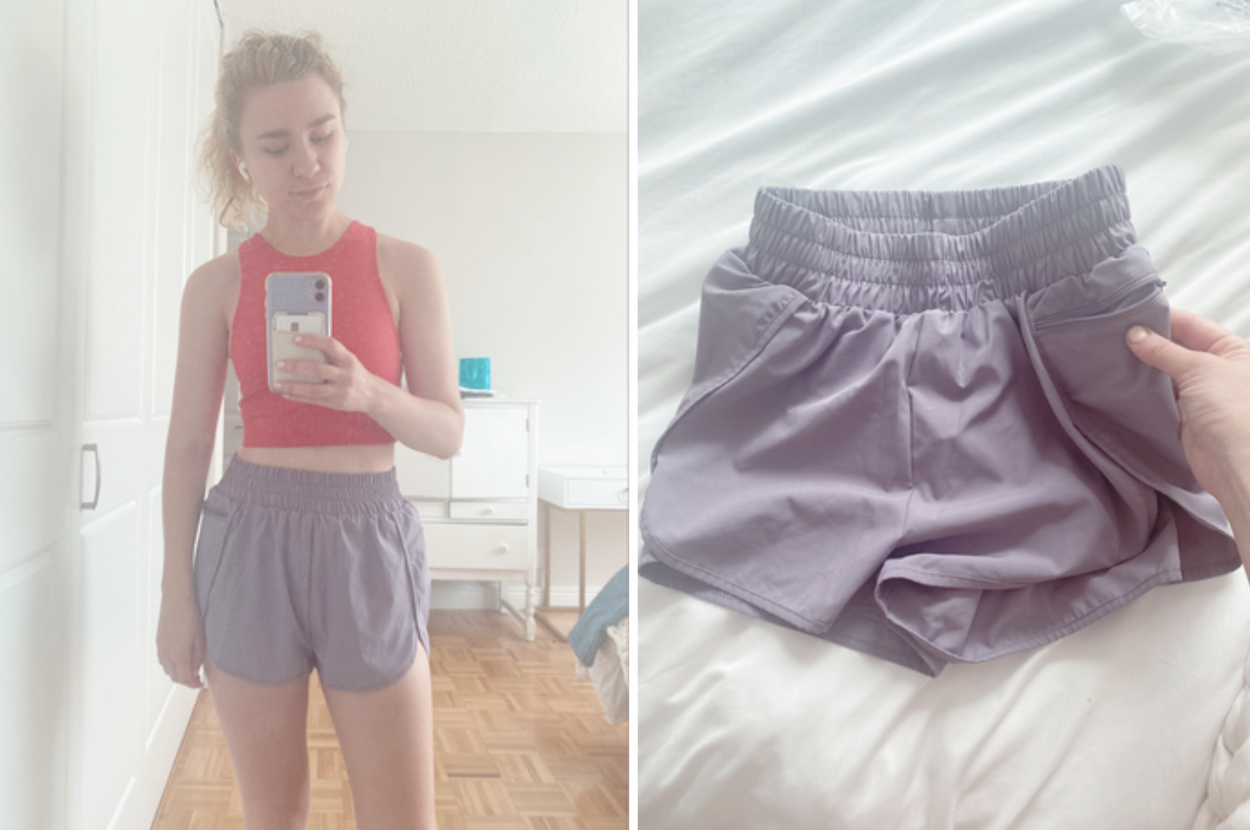 "I recently bought these shorts because I'm in love with the similar ones you can get at Old Navy, but they sell out so fast. Turns out I love these even more! I love the huge range of colors you can buy these in (at other places they often sell out too quickly to get to pick!), love that the high-waistedness of them meets about where my running crop top ends so I don't have to get bonkers with sunscreen, and love love loooooove the side pocket for my keys or face mask. I only have them in purple so far, but I'm excited to try other colors!"