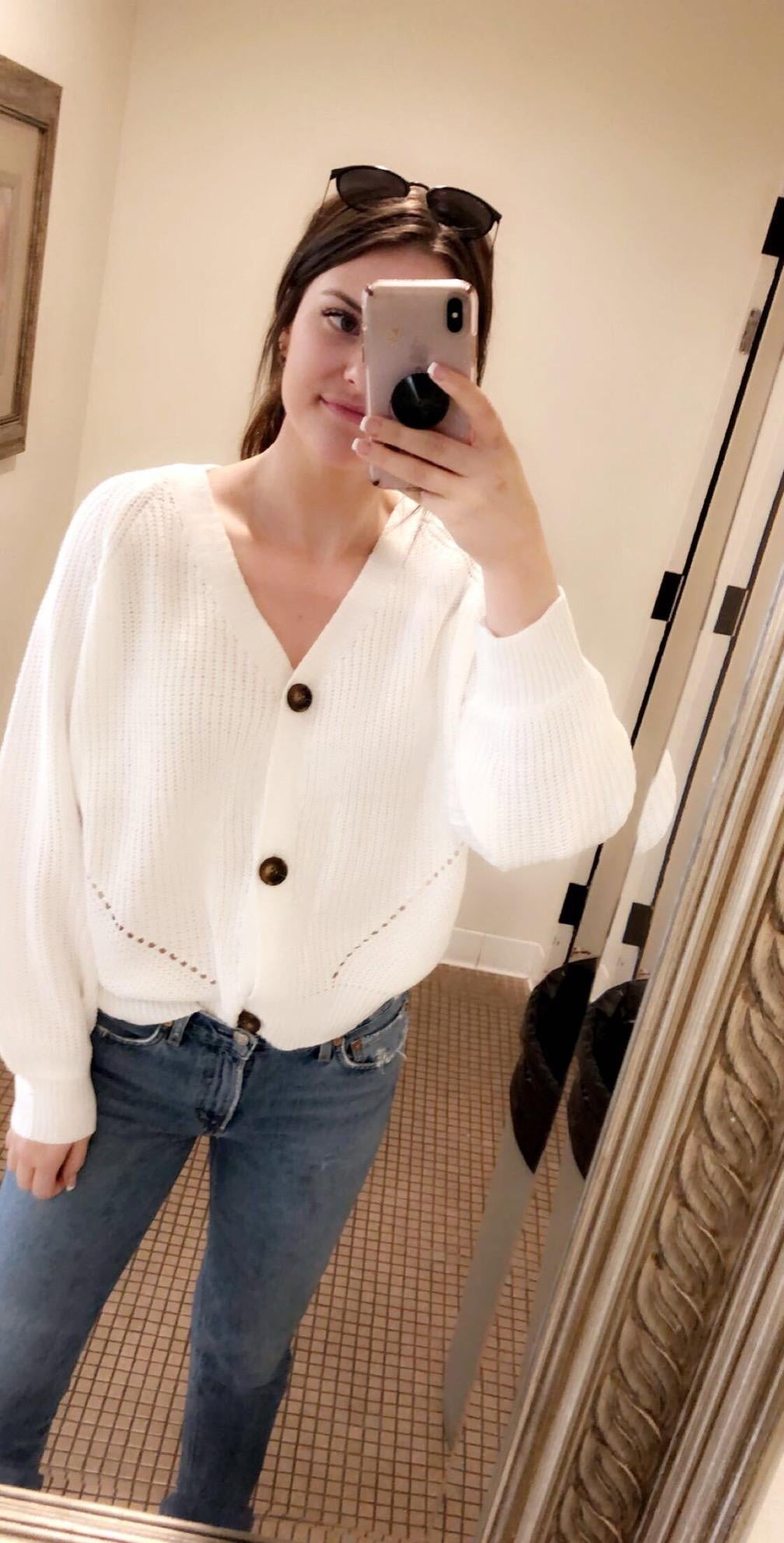 27. A chunky cardigan so you can layer it over T-shirts and tank tops for warmth, or button it up all the way and pair it with a lace bralette that just peeks through the neckline.