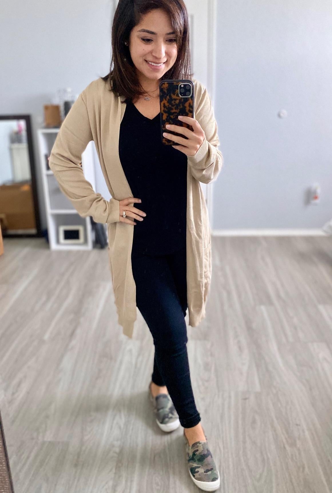 16. A soft and cozy long cardigan to keep you warm at work when the office manager insists that the AC still needs to be on in winter but you don't want to sit at your desk in your outside coat.
