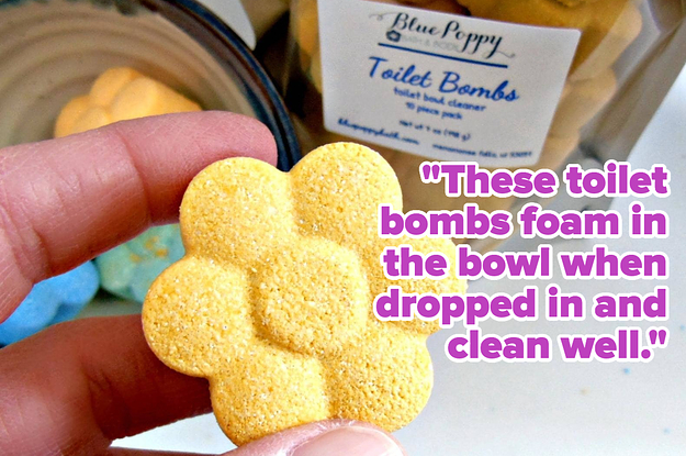 Promising review: "These toilet bombs foam in the bowl when dropped in and clean well. Smells great and much more eco-friendly than bottled cleaner!" —Barbara S.