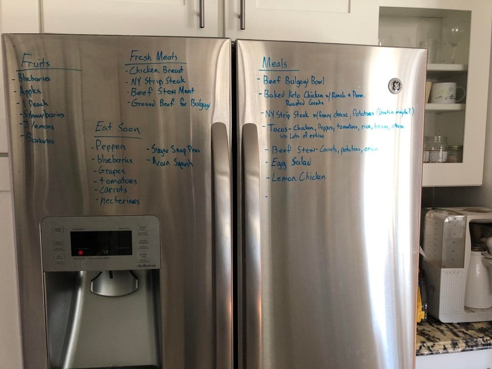 5. Keep a dry-erase inventory on the fridge door (or on a whiteboard attached to it) so you know what food you have at a glance.