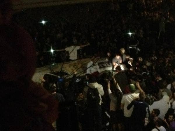 Disgruntled Penn State students are showing their displeasure of the firing of Joe Paterno by hitting the streets. The list of violence is at least one light post knocked down, a fire has been started, a news van has been flipped over, and an officer has been hit in the head with a bottle. See more at MenalityMagazine.com.