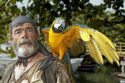 A giant pet parrot attacked a policeman after its owner was pulled over for driving with the bird on her shoulder.
