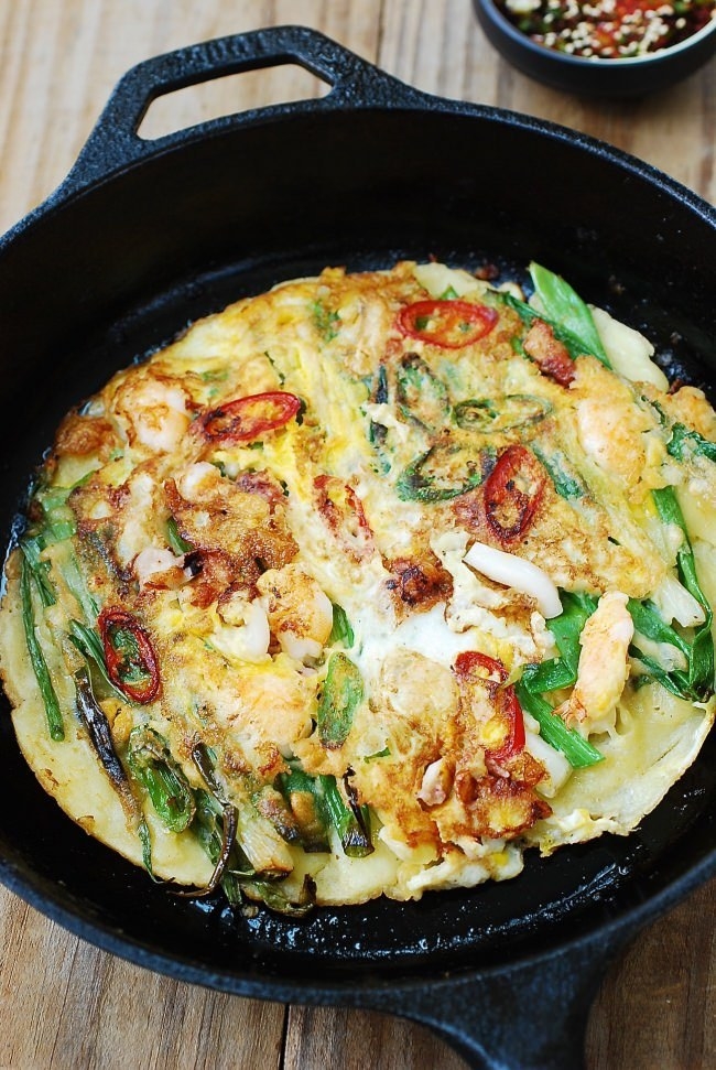 To make them extra crispy, make your pancakes thin and cook them over high heat. Serve with a green salad or a small bowl of rice. Recipe here.