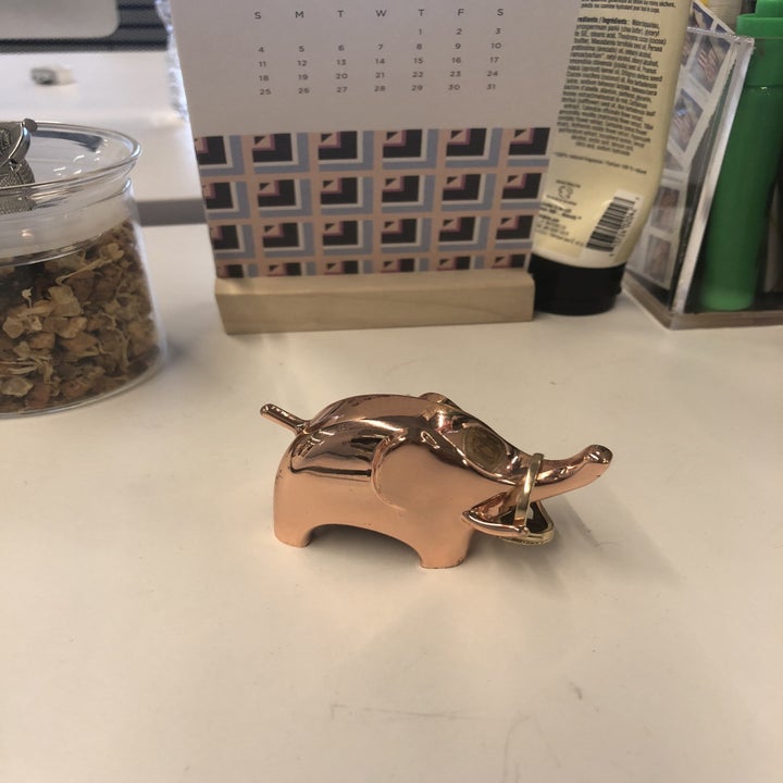 1. An elegant elephant ring holder that'll hold your jewelry while you lotion your hands.