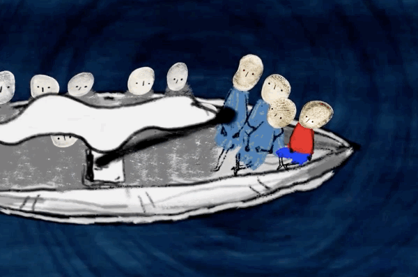 The powerful animations in the "Oh Canada" video recount the story of the Kurdi family's attempted journey from Syria to Canada to seek refuge.
