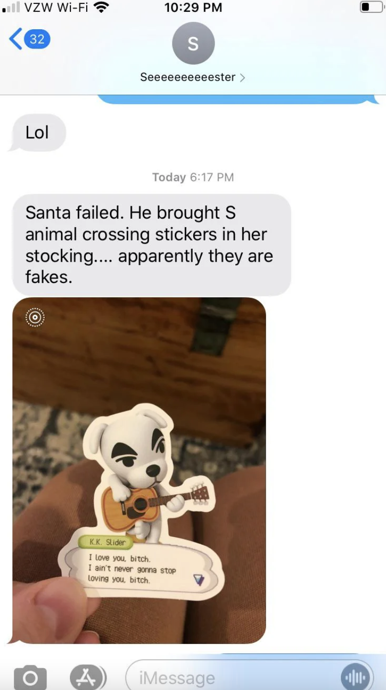 6. Bad gift: These Animal Crossing stickers, which would've been good if they weren't bootlegs with some questionable text.