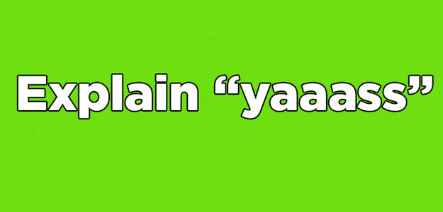 Buzz·Posted on Jul 31, 2015Can We Guess Your Age Based On How Much Slang You Know?Yaaass we can.by Minou ClarkCommunity ContributorFacebookPinterestTwitterMailLink Yuoak / Getty Images All food Correct Incorrect All food Abercrombie & Fitch Correct Incorrect Abercrombie & Fitch Anne Frank Correct Incorrect Anne Frank As fuck Correct Incorrect As fuck An athletic team Correct Incorrect An athletic team Your clique or posse Correct Incorrect Your clique or posse A rap group Correct Incorrect A rap group A group of soldiers Correct Incorrect A group of soldiers Turnip, the vegetable Correct Incorrect Turnip, the vegetable Get pumped Correct Incorrect Get pumped Get crunk and wild at a party Correct Incorrect Get crunk and wild at a party Turn up the volume Correct Incorrect Turn up the volume Average or stereotypical Correct Incorrect Average or stereotypical Simple-minded Correct Incorrect Simple-minded Easy Correct Incorrect Easy A solution that has PH of 8-1 Correct Incorrect A solution that has PH of 8-1 To do something mean Correct Incorrect To do something mean To do something fabulous Correct Incorrect To do something fabulous To do something ridiculous Correct Incorrect To do something ridiculous To kill someone Correct Incorrect To kill someone It stands for "that boy there" Correct Incorrect It stands for "that boy there" It stands for "throwback Thursday" Correct Incorrect It stands for "throwback Thursday" It's code for "thanks but no thanks" Correct Incorrect It's code for "thanks but no thanks" A BLT sandwich with extra turkey Correct Incorrect A BLT sandwich with extra turkey When you want two people to be together Correct Incorrect When you want two people to be together When you want to mail something Correct Incorrect When you want to mail something A boat, duh Correct Incorrect A boat, duh A relationship Correct Incorrect A relationship The German word for "yes" Correct Incorrect The German word for "yes" A new word for "yes" Correct Incorrect A new word for "yes" A new word for "ass" Correct Incorrect A new word for "ass" An excited exclamation Correct Incorrect An excited exclamation Butter with truffles in it Correct Incorrect Butter with truffles in it A Nicki Minaj song Correct Incorrect A Nicki Minaj song Disgusting, let's not even go there Correct Incorrect Disgusting, let's not even go there Unhealthy Correct Incorrect Unhealthy You're super confused Correct Incorrect You're super confused You're so overwhelmed with emotion Correct Incorrect You're so overwhelmed with emotion You can't do something Correct Incorrect You can't do something YOU. LITERALLY. CAN'T. Correct Incorrect YOU. LITERALLY. CAN'T. Horny Correct Incorrect Horny Annoying Correct Incorrect Annoying Ambitious Correct Incorrect Ambitious Dehydrated Correct Incorrect Dehydrated An attractive person Correct Incorrect An attractive person Your S.O. Correct Incorrect Your S.O. Baebies? Correct Incorrect Baebies? Like down by the bay Correct Incorrect Like down by the bay An epic escape Correct Incorrect An epic escape When something is on point Correct Incorrect When something is on point Your eyebrows look freakin' amazing Correct Incorrect Your eyebrows look freakin' amazing A group of navy vessels Correct Incorrect A group of navy vessels A game to play with a dog Correct Incorrect A game to play with a dog Something cool and hip Correct Incorrect Something cool and hip So passé Correct Incorrect So passé Not going to happen Correct Incorrect Not going to happen