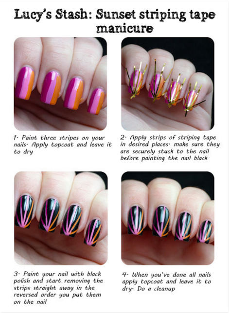 All you have to do is paint a tricolour on your nails, stick some tape over the top, paint a black layer and then peel away. This is a proper life hack and seems like the kind of activity they really should teach kids in a primary school art class.