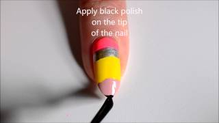 Basically you just paint a strip of pink at the base of the nail (the rubber), then a thin line of silver (the metal surrounding the rubber), followed by a chunk of yellow (the pencil body), and finished with a bit of beige (the wood). And a dot of black ~lead~.