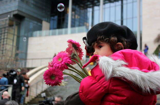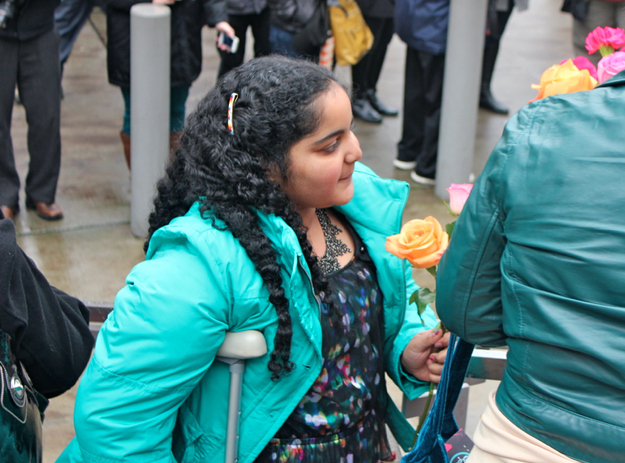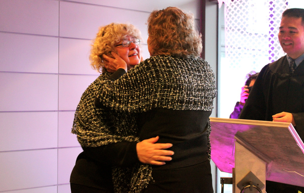 1. The first time I got chills was when I got to City Hall and saw these women showing off their homemade “23” bouquets for 23 years together.