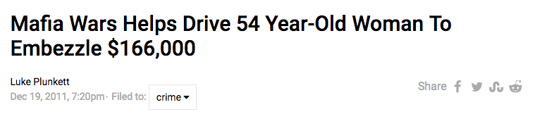 And the woman who embezzled $166,000 to spend on Mafia Wars.