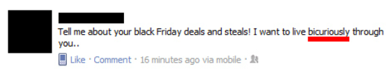 This incredible spelling of "vicariously."