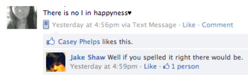The legendary "no I in happyness."