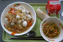Rice and fish make up the bulk of the menu, but some days students are treated to the kind of East-West comfort food. Source. Picture via.