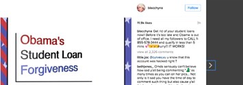 “Get rid of your student loans now! Before it’s too late and Obama is out of office,” the Chymoji creator told her 10.6 million followers.