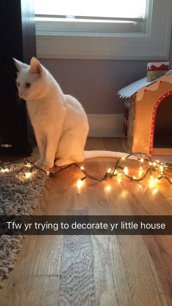 This cat, who will scream at this fairy light every day until Dec. 26.