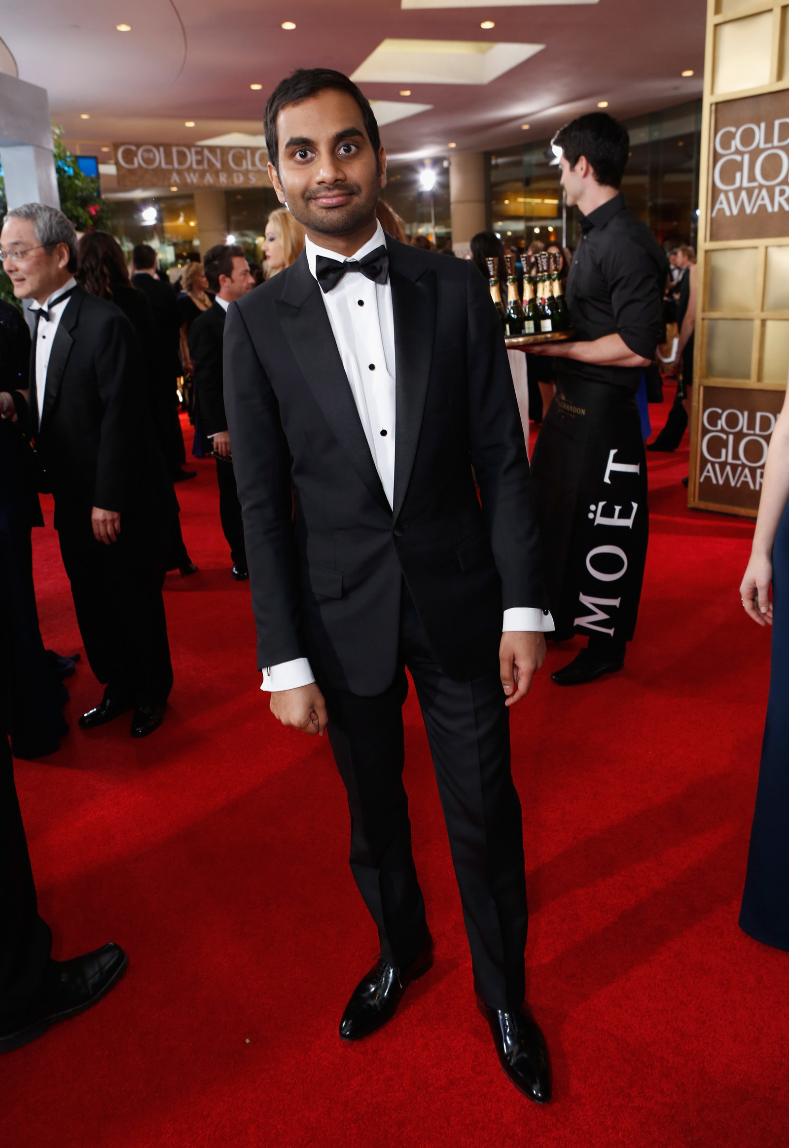 Then: 2013 Golden Globe Awards, when Ansari presented an award alongside Jason Bateman.